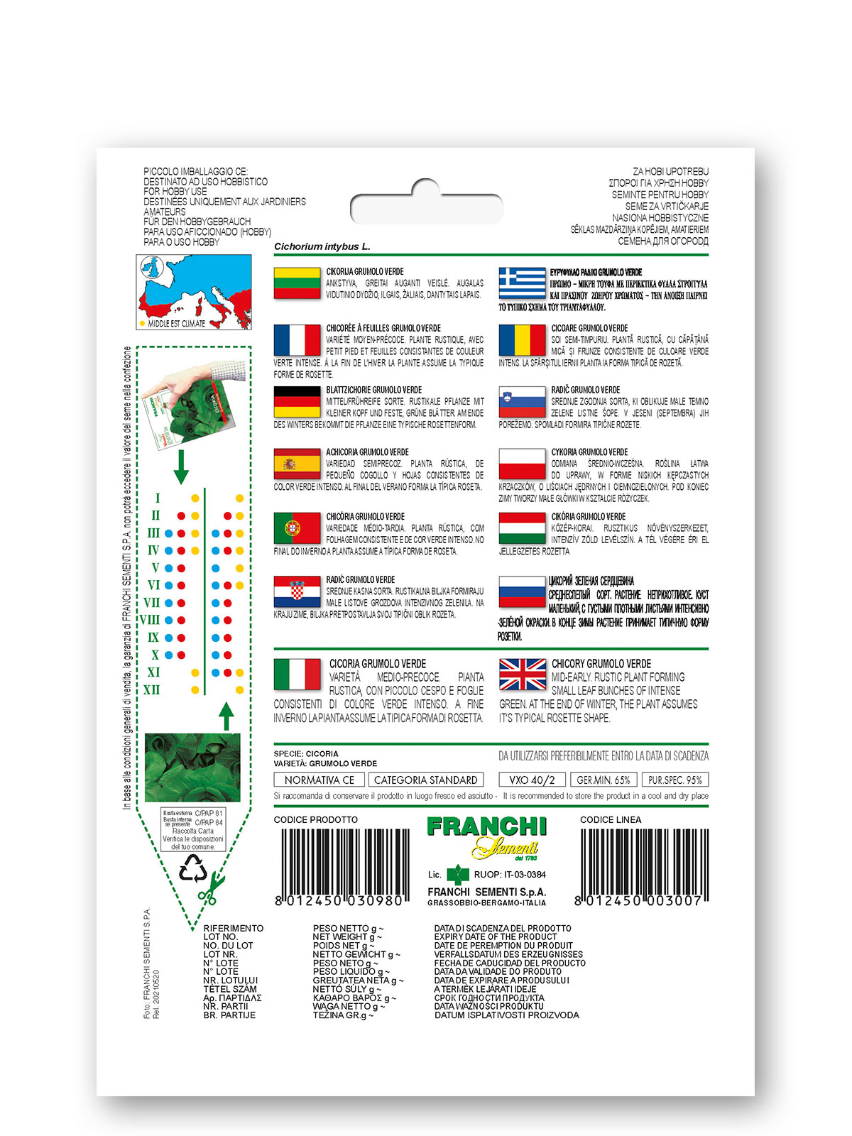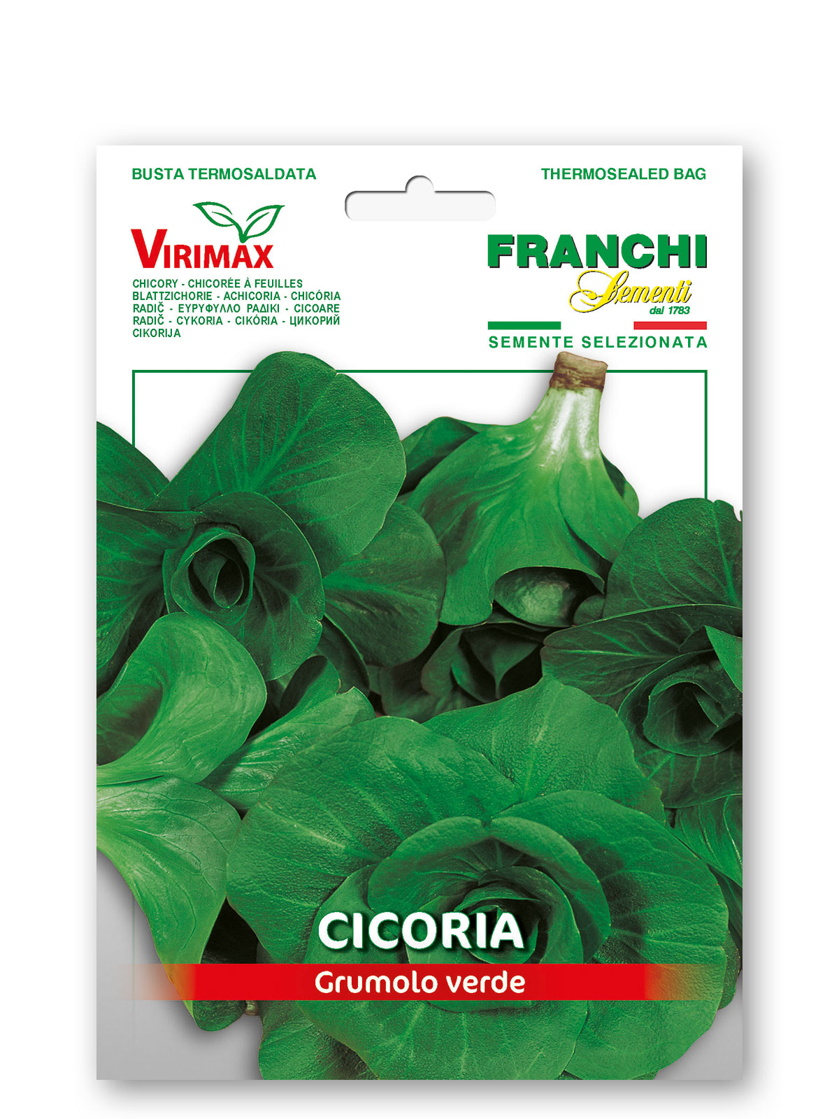 CICORIA A GRUMOLO VERDE – Varieta’ medio-precoce. Pianta rustica, con piccolo cespo e foglie consistenti di colore verde intenso. A fine inverno la pianta assume la tipica forma di rosetta.
