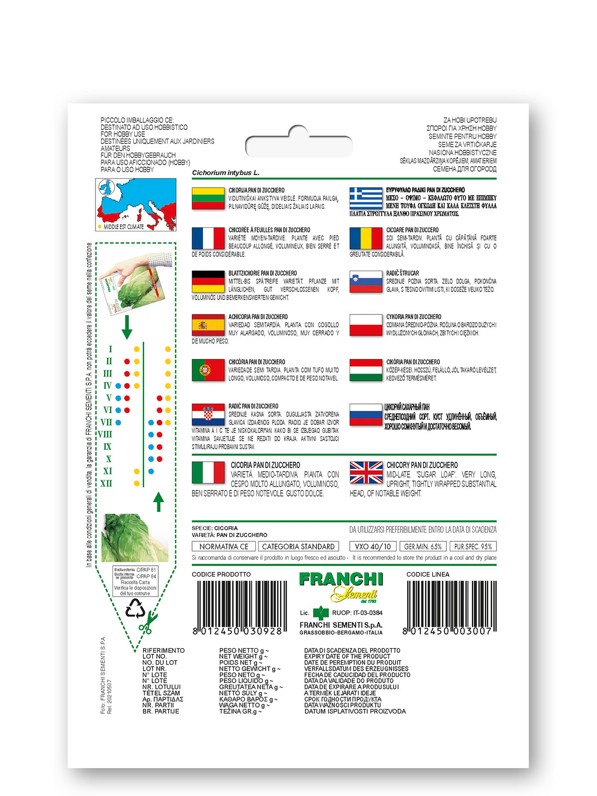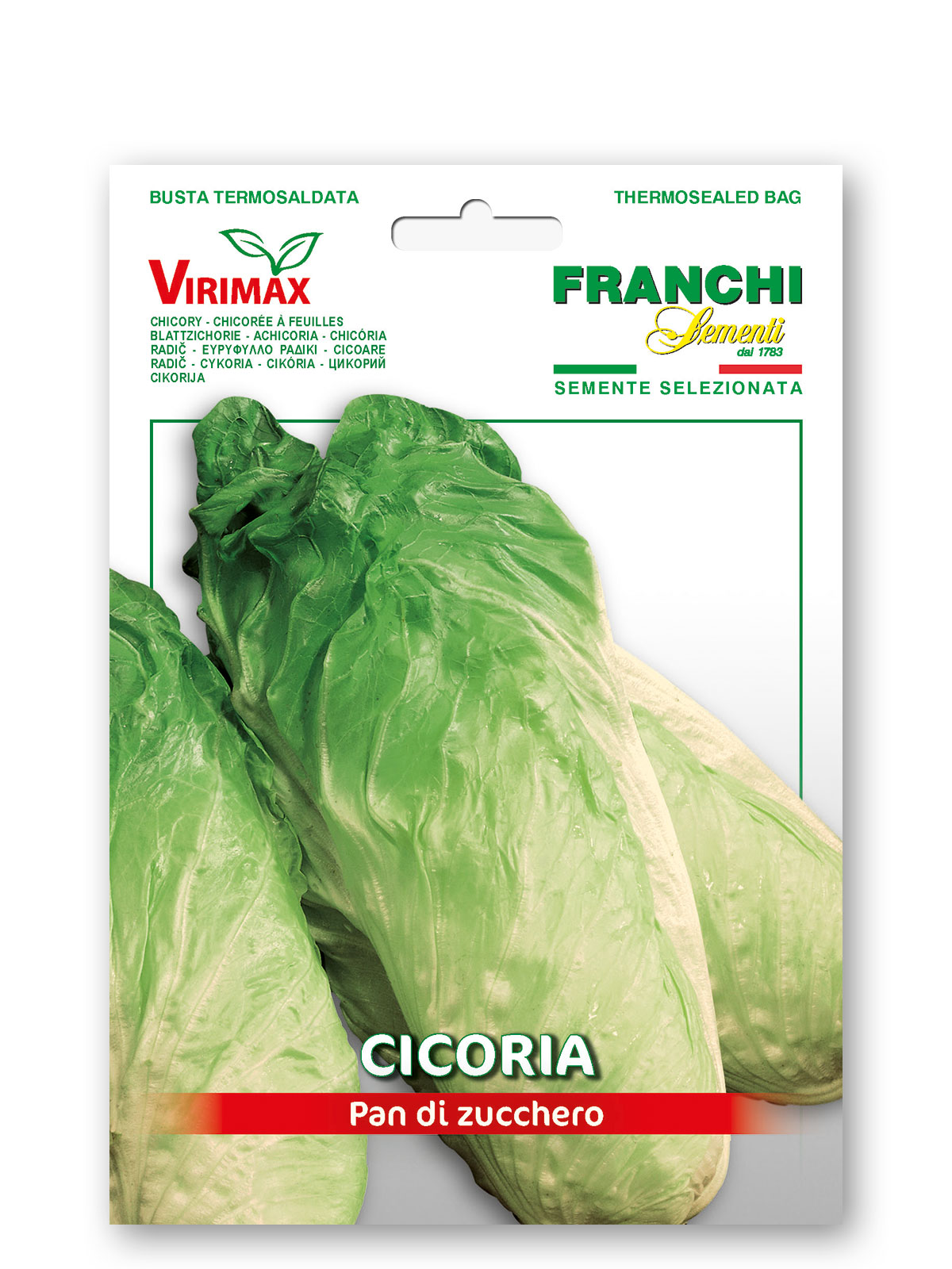 CICORIA PAN DI ZUCCHERO – Varieta’ medio-tardiva. Pianta con cespo molto allungato, voluminoso, ben serrato e di peso notevole.