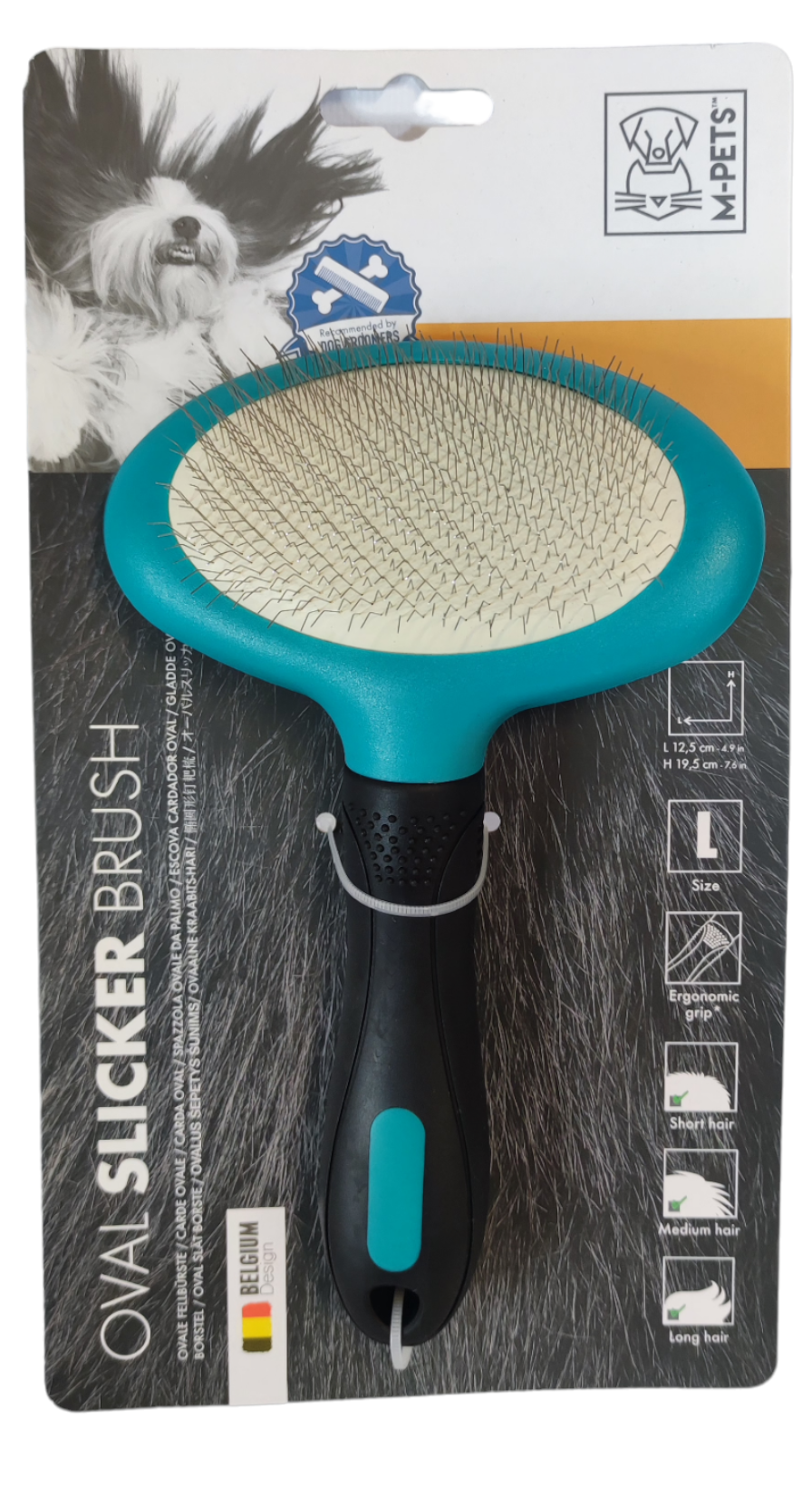 Pratica spazzola adatta a peli corti, medi o lunghi. Può essere usata per rimuovere lo sporco, ma anche per eliminare facilmente peli morti, nodi e grovigli. Le setole sottili in acciaio lasciano il pelo del cane lucido e sano.